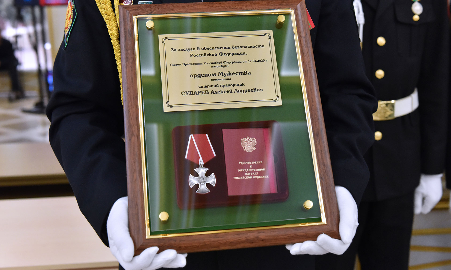 19 марта в Брянске состоялась церемония передачи государственной награды родным сотрудника Брянского погрануправления ФСБ России старшего прапорщика Алексея Сударева, награжденного Орденом Мужества посмертно.
