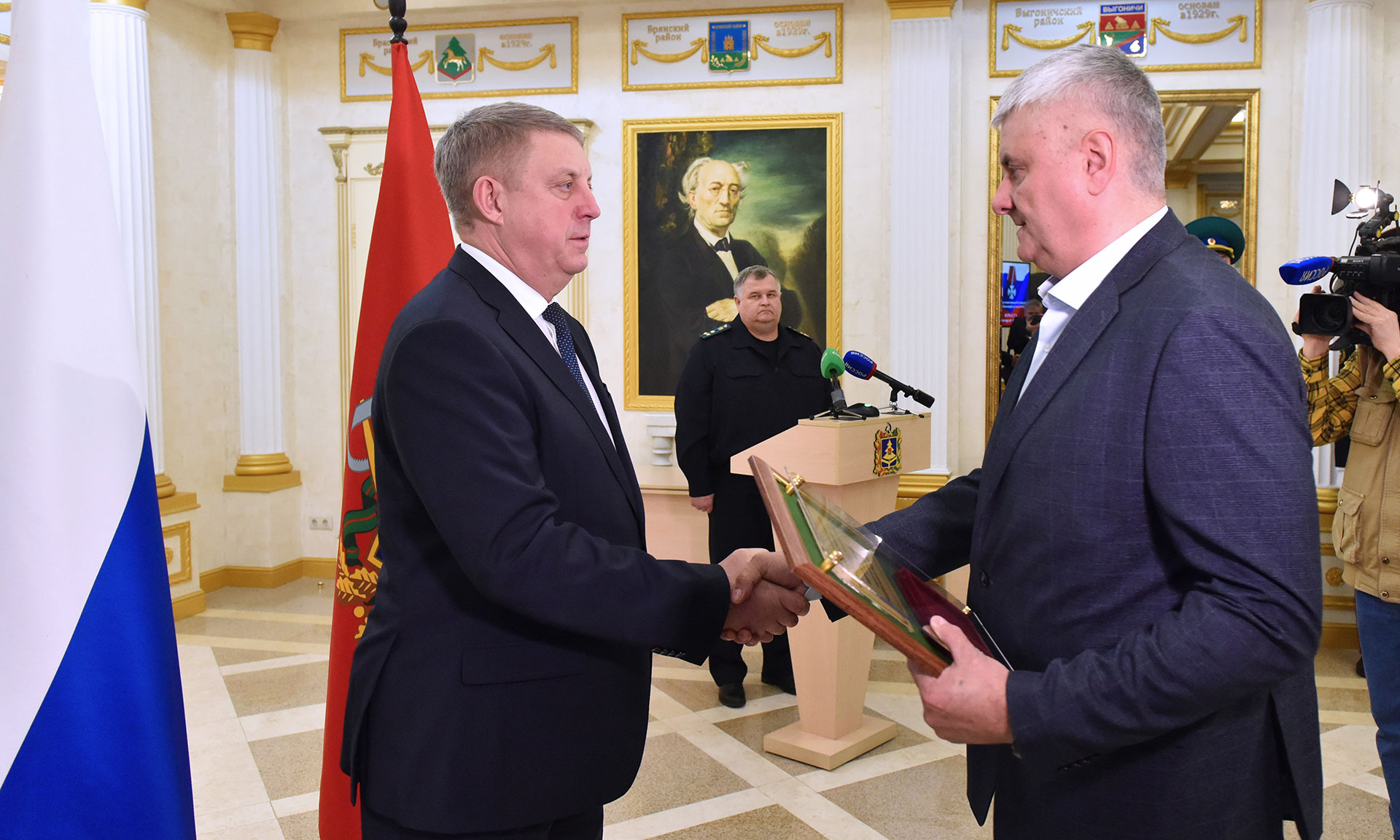 Александр Богомаз передал отцу погибшего защитника Родины Алексея Сударева государственную награду