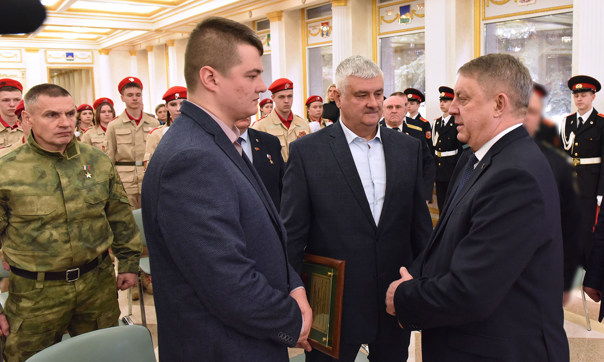 По поручению Президента России, Верховного главнокомандующего Владимира Владимировича Путина Губернатор Александр Богомаз передал награду отцу Героя Андрею Валерьевичу.