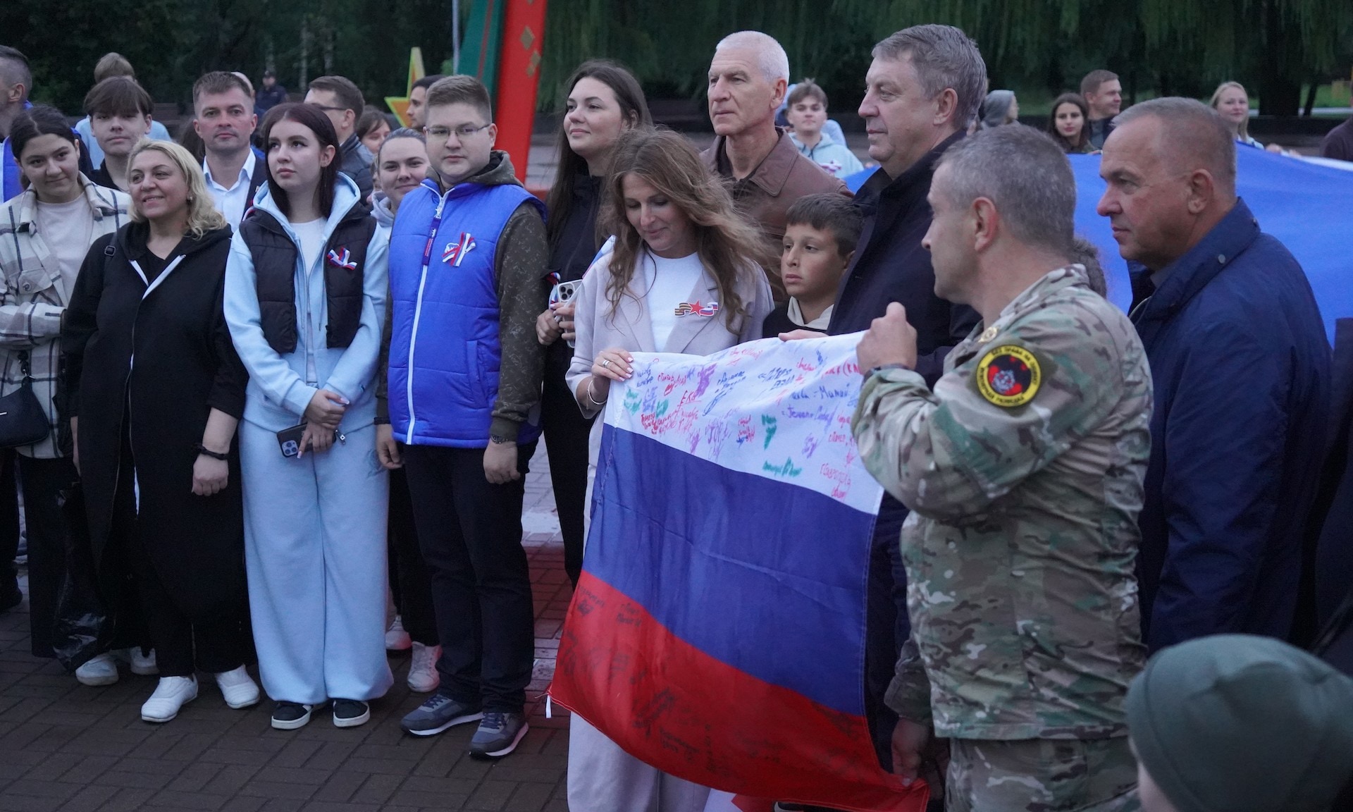 — Большая честь в этот праздничный день — от наших земляков, наших защитников с передовой, флаг России передал ветеран СВО Андрей Швыркин, — отметил Губернатор Брянской области.