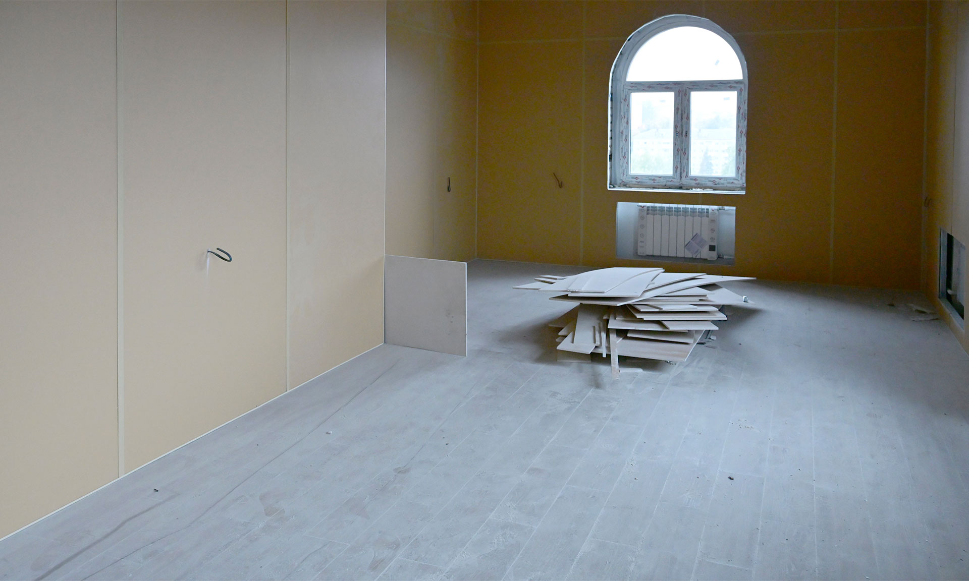 Во всем здании учебного корпуса идет чистовая отделка. Четвертый этаж уже через две недели будет готов — работы ведутся с верхних этажей здания. На всех этажах работают бригады в усиленном темпе. В декабре все четыре этажа планируется сдать, чтобы студенты уже могли заниматься в собственном здании.