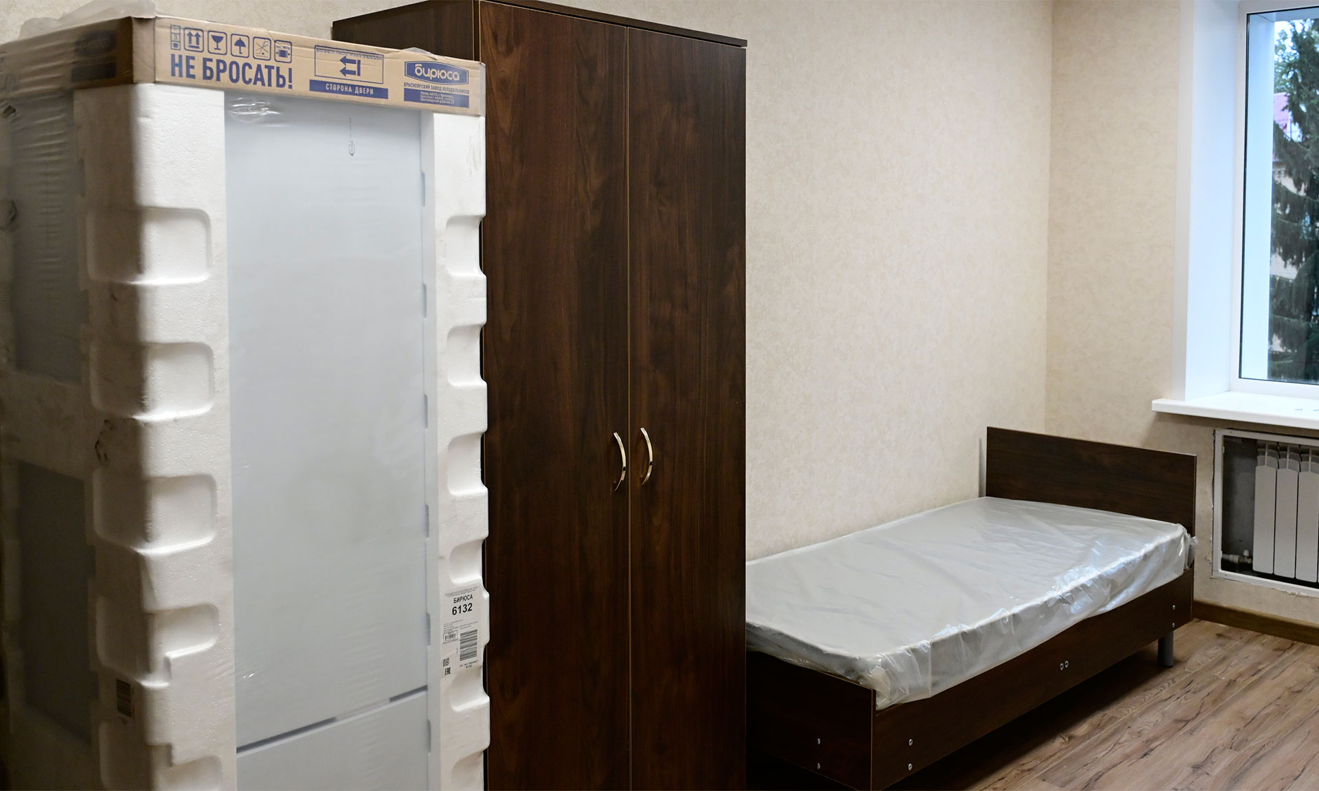В общежитии уже готовы все комнаты, устанавливается мебель, бытовая техника.