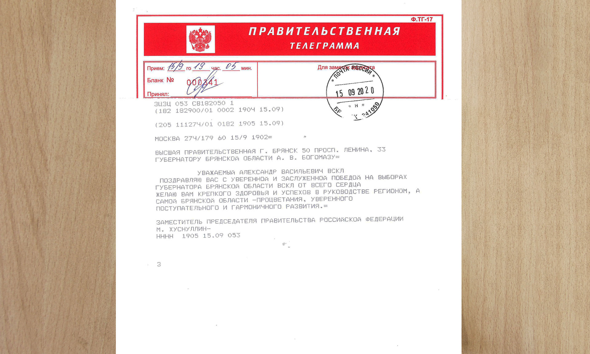 Поздравляю Вас с уверенной и заслуженной победой на выборах Губернатора Брянской области!