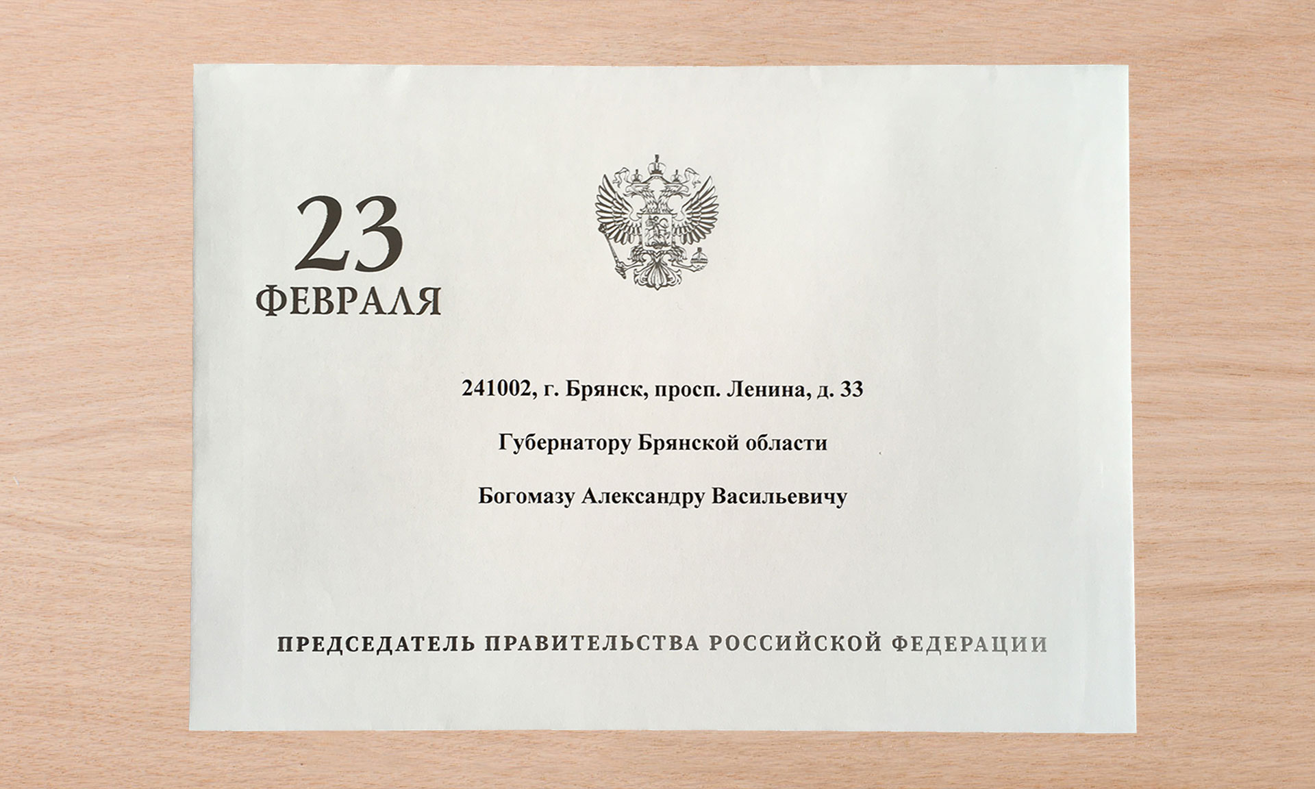 Председатель Правительства РФ Михаил Мишустин поздравил Губернатора Брянской области с Днем защитника Отечества